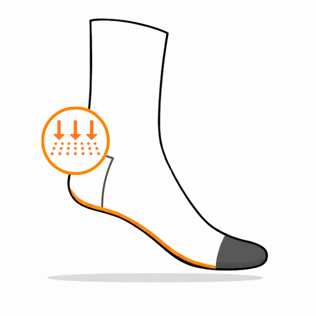 We designed our socks with targeted Active Arc compression in the arch and metatarsus, boosting blood flow and delivering extra stability right where you need it. This advanced support helps reduce foot fatigue, so you can stay energized and focused.